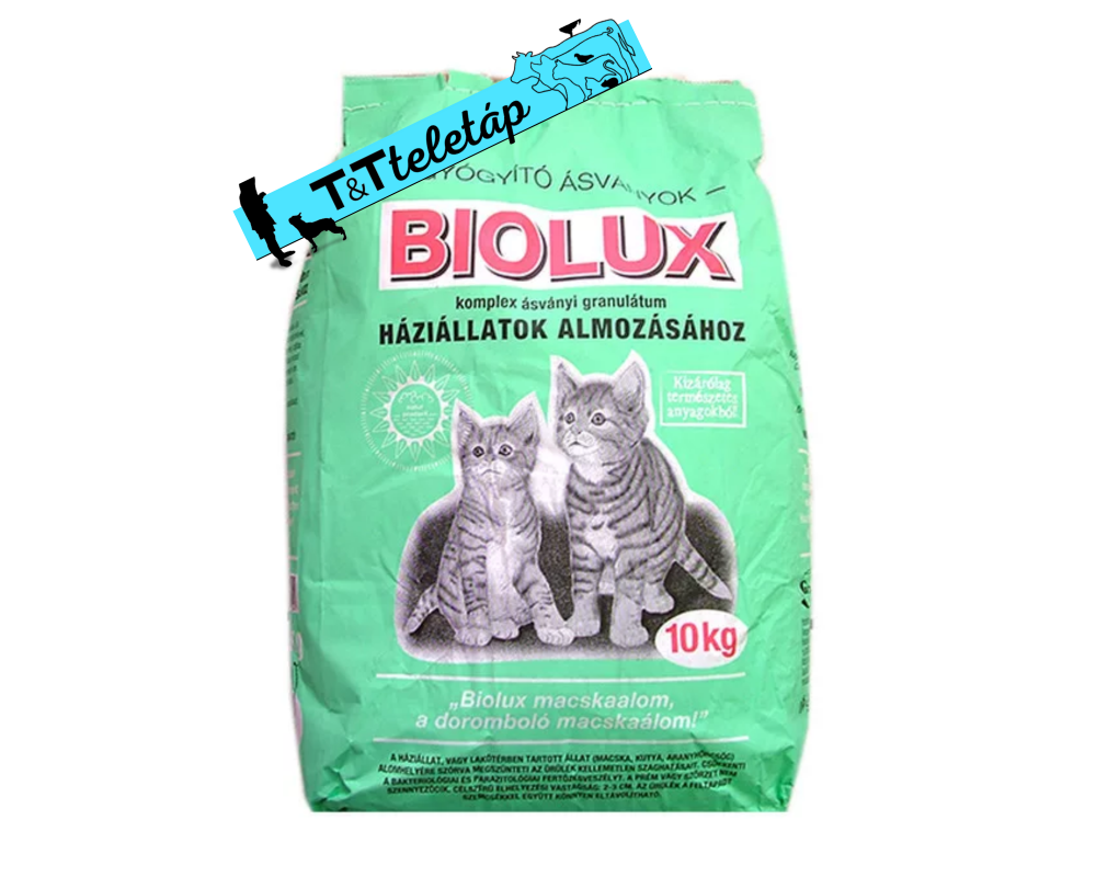 Higiénikus, szagtalanító, antiparazitikus hatású. Macska és egyéb kisállatok almozásához. A Biolux macskaalom egy ásványi alapú termék,mely jól szívja amgába a nedvességet. Közepesen jól csomósodik, mely által csak az ürülékest részt kell kidobni az alom tálból. Célszerű elhelyezési vastagság: 2-3 cm.