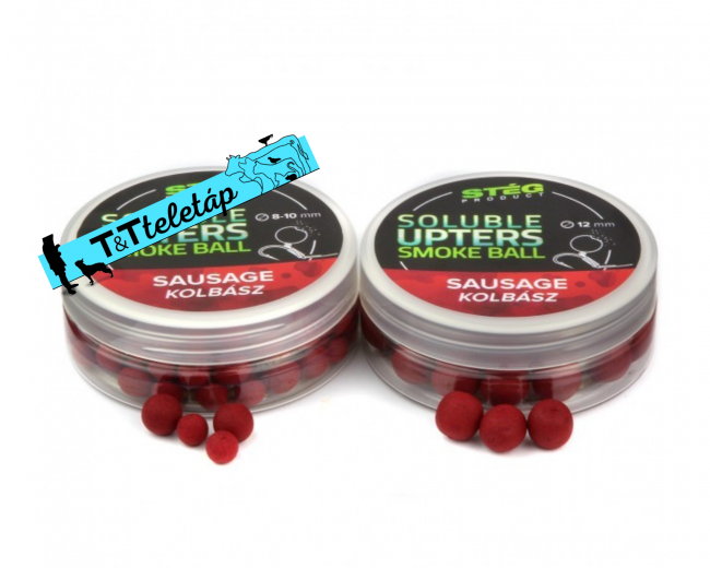 Az UpTers SOLUBLE Smoke Ball látványos íz- és színhatást produkáló balanszírozott method feeder csali! A STÉG wafters típusú füstölő csalijai nemcsak Magyarországon, hanem egész Európában nagy népszerűségnek örvendenek magas minőségük miatt. A normál csalikhoz képest a csali köré egy fluoreszkáló felhőt engednek ki, ami élénk színe miatt messziről felkelti a halak érdeklődését. Folyamatos fejlesztés és tesztelés alatt állnak, ezért a 2023-as évben megjelent az oldódó változat, ami még hatékonyabban és gyorsabban engedi ki magából a felhősitő, aroma- és ízanyagokat. Ezekkel a csalikkal sokkal gyorsabb kapást tudunk elérni. A csalitüskén felkínálva a horog a fenéken, illetve kosarunkon marad, annak síkjából csak a tüske és a csali emelkedik ki, így a legóvatosabb halak is könnyen becsaphatók. Egy dobozon belül két méretű, azonos szín, illat-, és aromatartalom, színhatást produkáló csali található, ezért gyorsan tudunk váltani ha a halak mérete nagyobb csalit kíván meg.